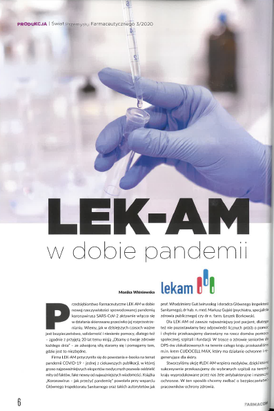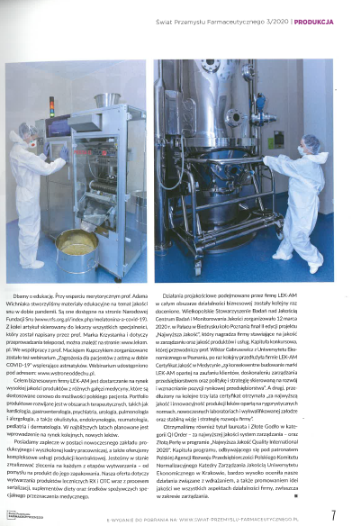 Z przyjemnością informujemy o ukazaniu się artykułu na temat naszej firmy w Świecie Przemysłu Farmaceutycznego nr 3/2020