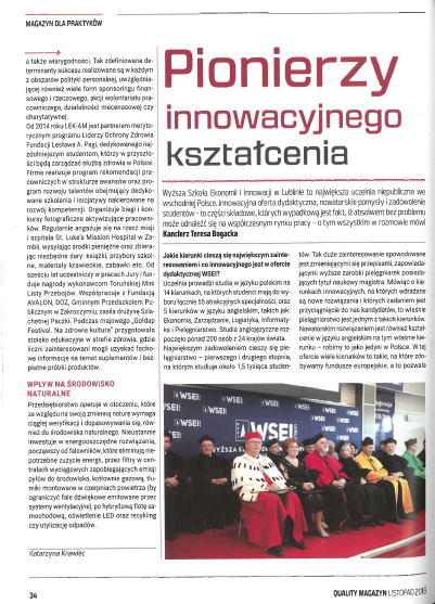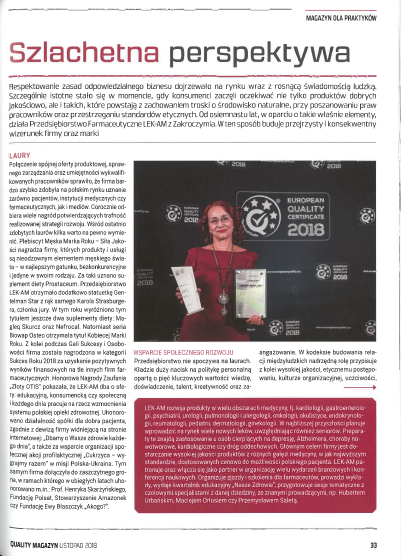 Z przyjemnością informujemy o ukazaniu się artykułu na temat Naszej firmy w Quality Magazyn dla Praktyków.